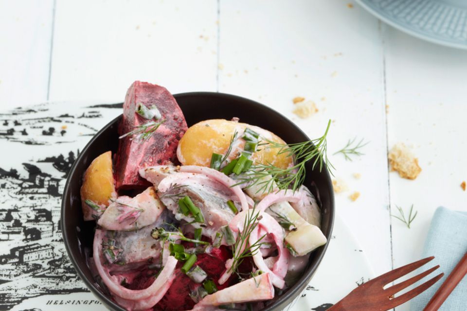 Skandinavisch: Salat mit Matjes, Kartoffeln und Rote Bete.